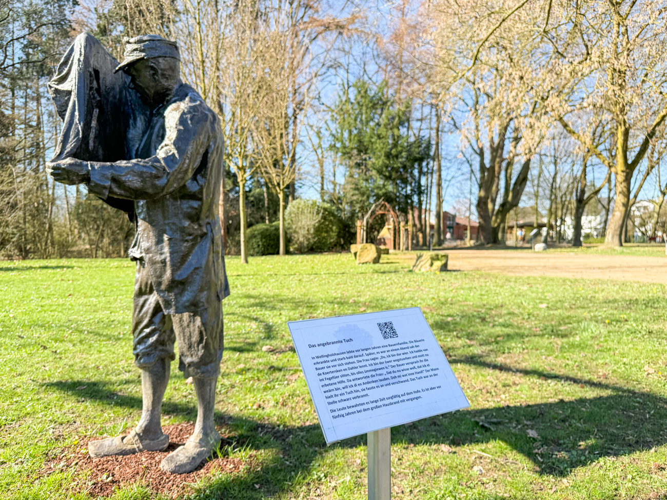 Im Anschluss schaute sich die Gruppe noch zwei nachahmenswerte Projekte aus Melle an. So wurde der sagenhafte Bürgerpark in Wellingholzhausen mit mehreren Skulpturen aufgewertet. Ziel war es, lokale Sagen und Mythen im kollektiven Gedächtnis zu verankern, aber auch, die Aufenthaltsqualität des beliebten Treffpunkts zu erhöhen. Der Spielplatz am Osterbach wurde durch die Erweiterung um Outdoor-Fitnessgeräte zum Mehrgenerationenpark. So schafft LEADER Raum für Begegnung, Gesundheit und Erholung.