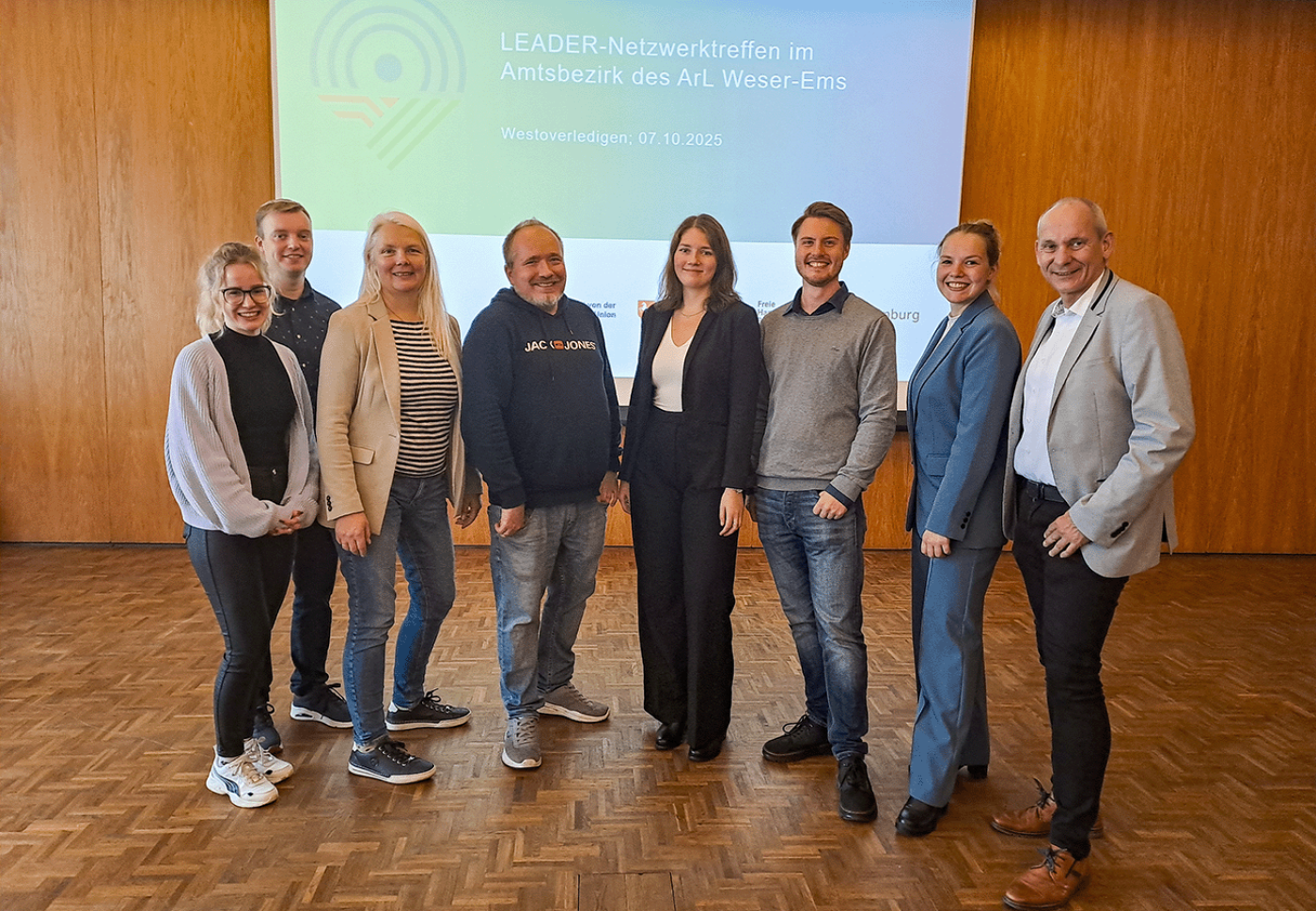 Beim aktuellen LEADER-Netzwerktreffen kamen die Regionalmanager:innen und Sachbearbeiter:innen der ÄrL (Ämter für regionale Landesentwicklung) aus dem Bezirk Weser-Ems zusammen. Stattgefunden hat das Treffen in Westoverledingen im Amtsbezirk Aurich. Neben Projektbesichtigungen kamen wichtige Themen zur Zukunft der LEADER-Förderung auf den Tisch.