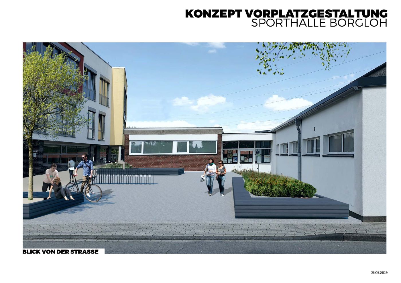 Die Idee zu einer Neugestaltung kam von den Borgloher Bürgerinnen und Bürgern. Sie wünschten sich eine Begrünung sowie generelle Aufwertung des Platzes am Schulzentrum, um den Ort zu einem Treffpunkt für alle Generationen zu machen. Die Gemeinde Hilter will diesem Wunsch nun nachkommen und den Platz barrierefrei umgestalten. Durch Grünflächen und Beete soll die Aufenthaltsqualität gesteigert werden. Im Sommer könnten hier Open-Air-Veranstaltungen stattfinden. Die Umgestaltung soll außerdem die Verkehrssicherheit für Kinder und Jugendliche erhöhen, die ihre Fahrräder an neuen Ständern diebstahlsicher abstellen können.