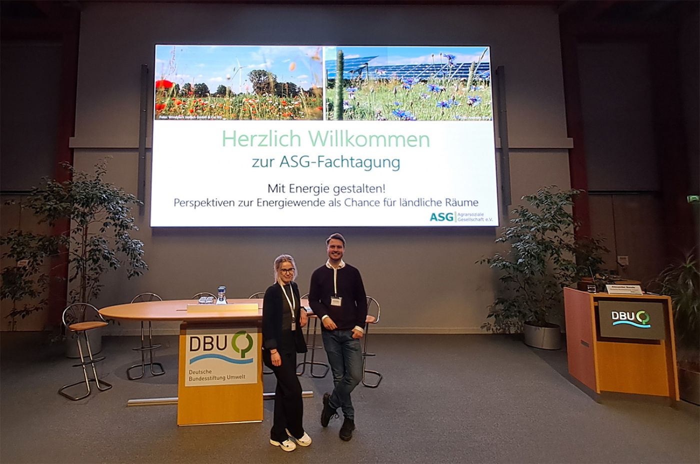 SOL- Regionalmangerin Christina Götz und ihre Kollege Nils Schnieders von der LEADER-Region Nördliches Osnabrücker Land auf der Fachtagung "Mit Energie gestalten!" bei der Deutschen Bundesstiftung Umwelt in Osnabrück. (Foto: pro-t-in GmbH)